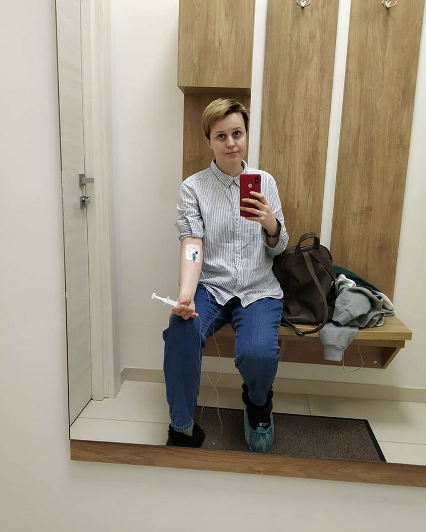 «Ще у квітні місяці 2019 року лікарі запропонували мені зробити аналіз PD-L, який визначив, яке саме мені підходить лікування. Враховуючи позитивний результат, мені рекомендовано хіміоімуннотерапію по протоколу Атезолизумаб (Тецентрик)+Nab-Паклітаксел (Абраксан). Якщо Тецентрик в Україні доступний, за власні кошти. То, Наб-Паклітаксел ще не зареєстрований в Україні і щоб його прокапати, потрібно отримати дозвіл від МОЗ + придбавати його через закордонних кур'єрів за власні кошти», – йдеться в дописі вінничанки.