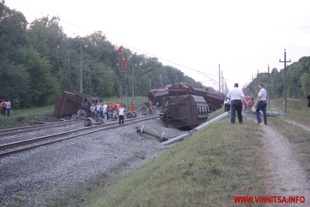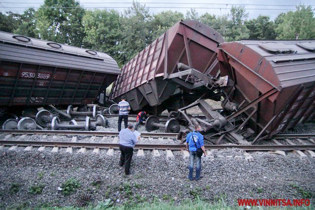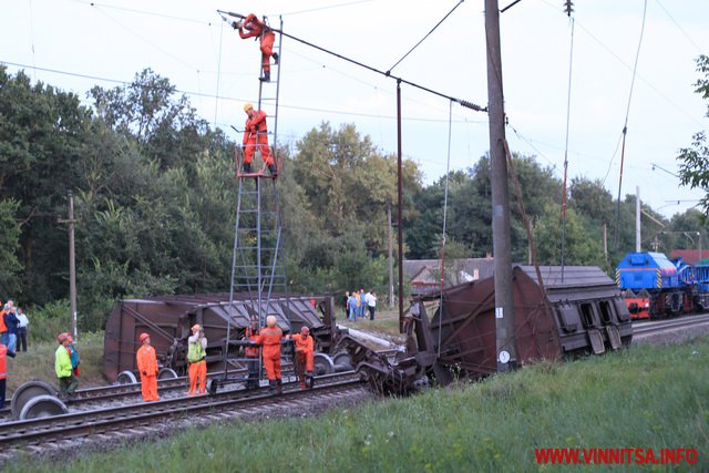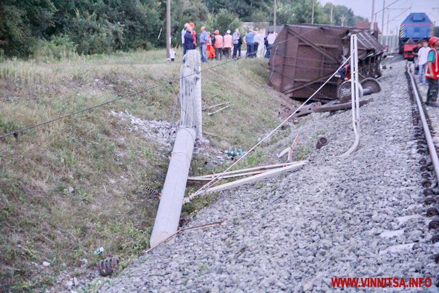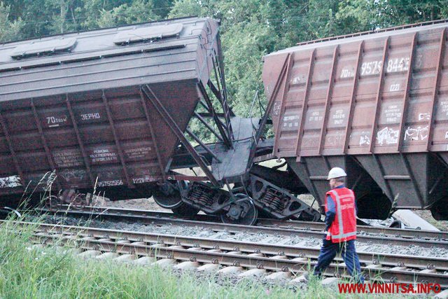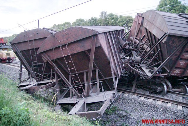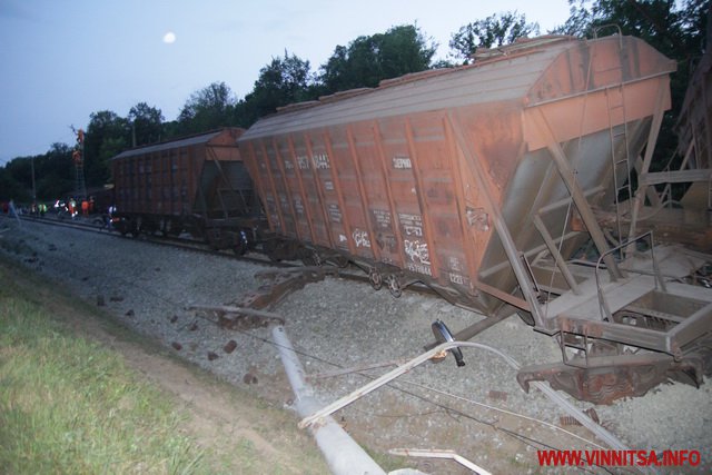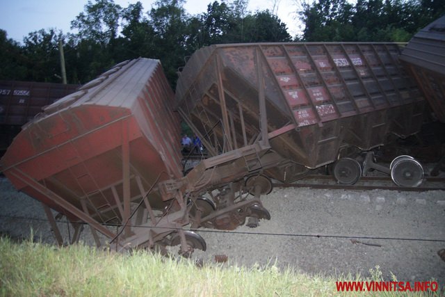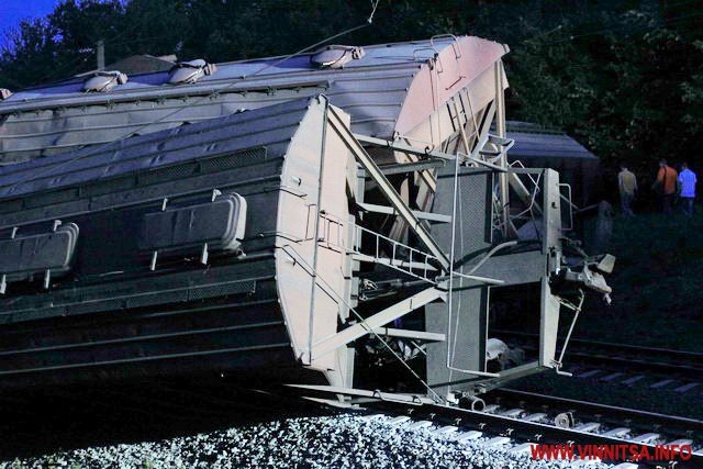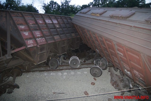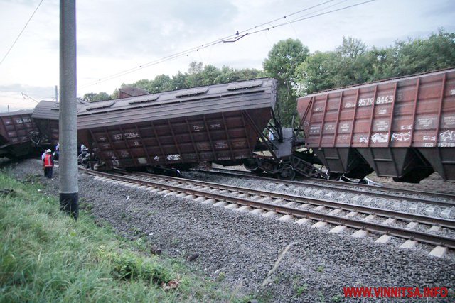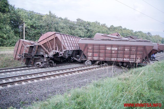 Поблизу села Сосонка Вінницького району Вінницької області перевернулися 12 вантажних вагонів-зерновозів, які пошкодили ділянку залізничної колії.