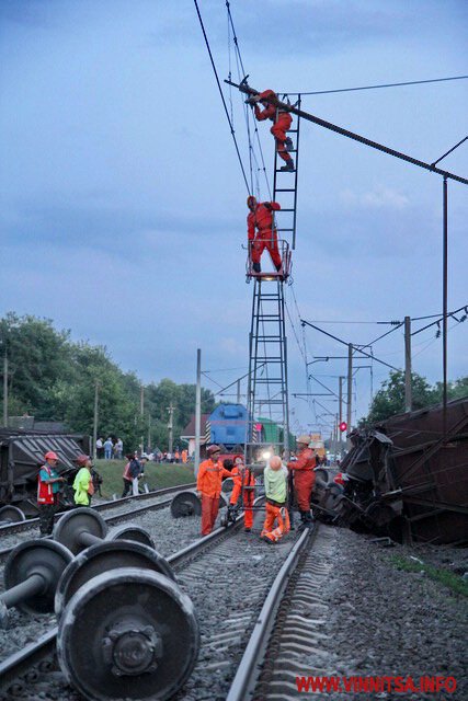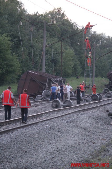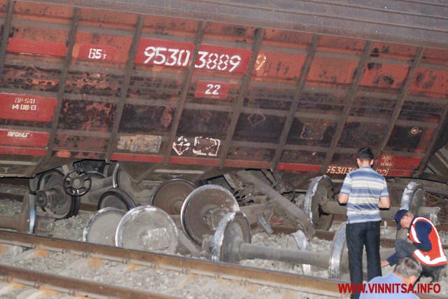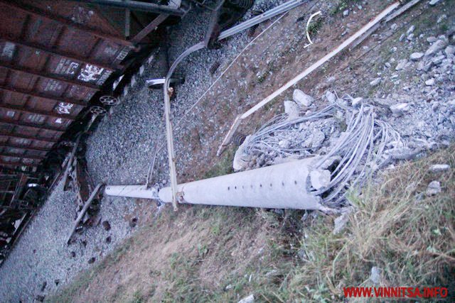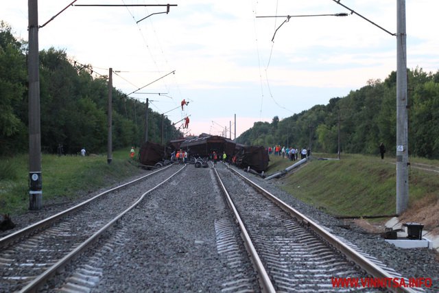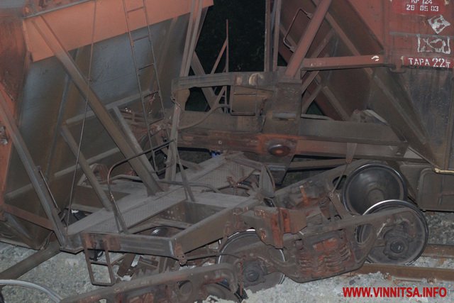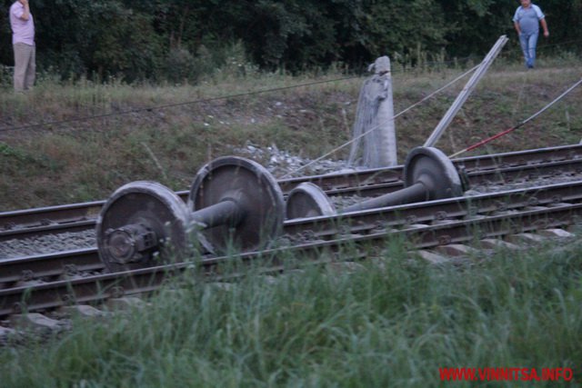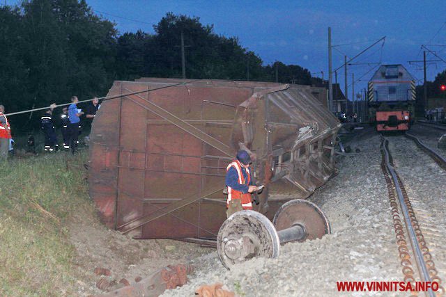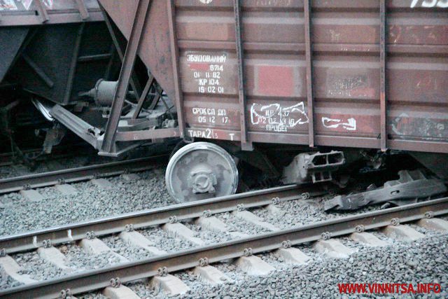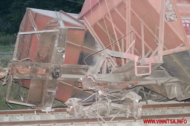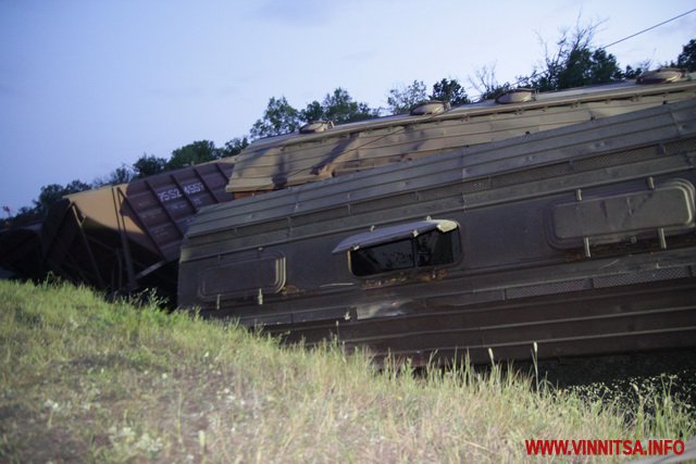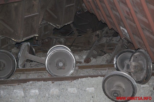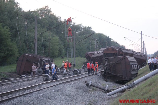 Поблизу села Сосонка Вінницького району Вінницької області перевернулися 12 вантажних вагонів-зерновозів, які пошкодили ділянку залізничної колії.