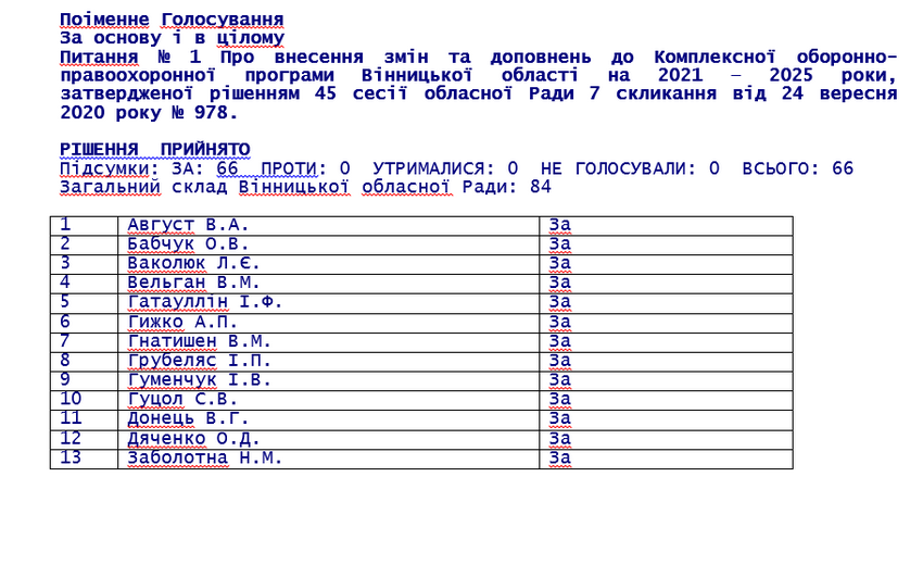 Позачергова сесія Вінницької обласної ради, яка відбулась 15 лютого, була надважливою для підтримки Сил територіальної оборони на Вінниччині. На цьому засіданні депутати голосували за виділення коштів, необхідних для облаштування фондів, де дислокуються батальйони тероборони. З 84 депутатів облради, на сесії були присутні 66. За зміни до Комплексної оборонно-правоохоронної програми проголосували одноголосно. На тероборону для початку виділили 3 млн гривень.
