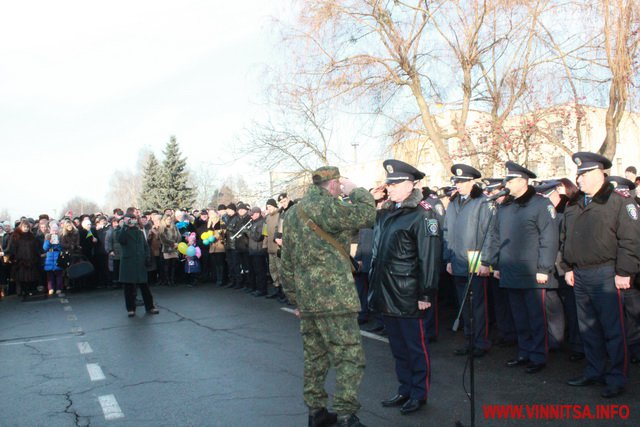«Прийміть подяку за те що ви вселили надію і віру в людей, які проживають на Сході, за те що забезпечували громадський порядок та брали участь в бойових операціях. Ми в суботу провели зведений загін на Схід, дай Бог, щоб вони, як і ви повернулись в повному складі», - говорить начальник УМВС у Вінницькій області Ігор Моренець.