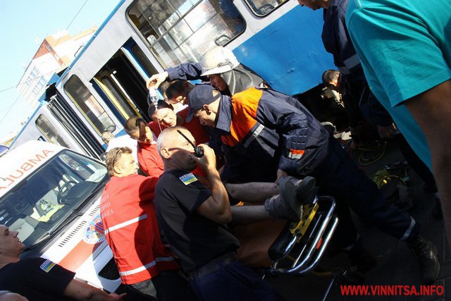 В Головному управлінні ДСНС України у Вінницькій області повідомили, що на сигнальні повідомлення водія трамваю чоловік не зреагував вчасно через те, що був у навушниках, в результаті ДТП, хлопця затиснуло на землі під кабіною трамвая.