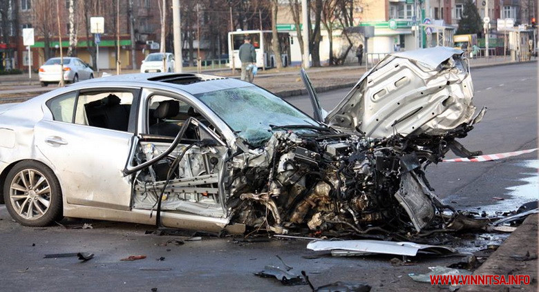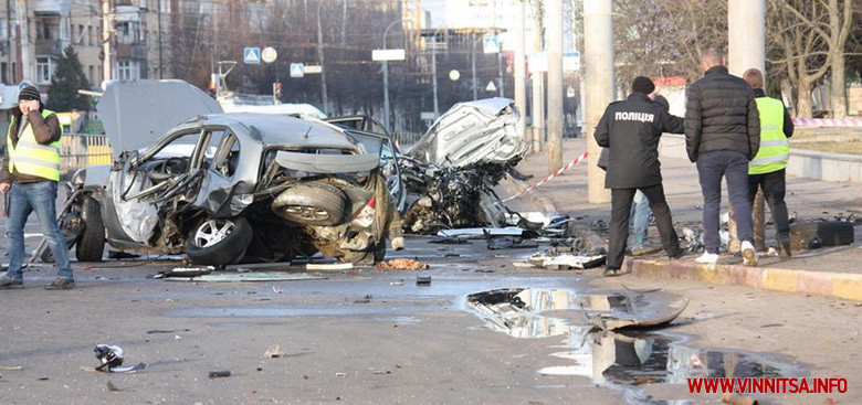 «Установлено, що 9 березня, між 4-тою та 5-тою годинами ранку, автомобіль «Infiniti», під керуванням 23-річного вінничанина, який рухався вулицею Келецькою в бік мікрорайону «Вишенька», в’їхав в автомобіль таксі «Chery Tiggo», що їхав попереду в попутному напрямку. Від удару «Infiniti» зніс огорожу заправочної станції, а таксі зіткнулося зі стовпом.