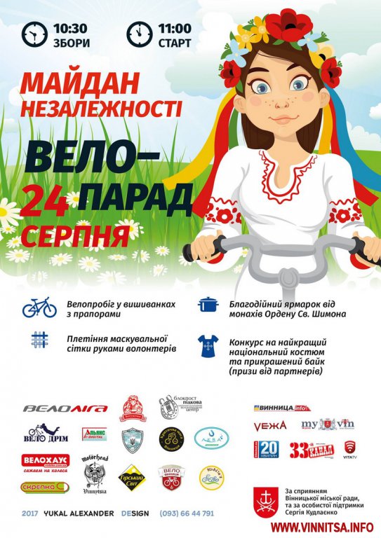 24 серпня Україна святкуватиме 27-му річницю Незалежності. У Вінниці традиційно в цей день проводиться патріотичний велопробіг у вишиванках.