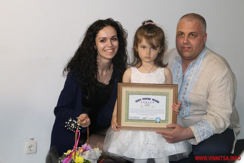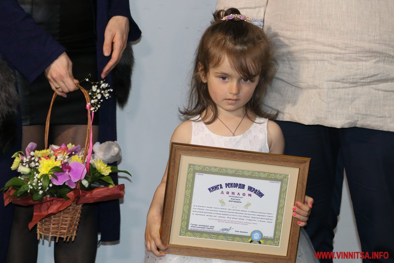Під час урочистої частини маленькій вінничанці вручили «Диплом за встановлення рекорду України у категорії «Діти, мистецтво, вперше», як найменша художниця України у стилі «Реалізм»».