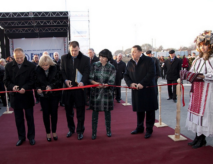 У Вінниці відкрили «Епіцентр». Червону стрічку перерізали Галина и Олександр Гереги, голово Вінницької облдержадміністрації Микола Джига та народна артистка України Оксана Білозір.