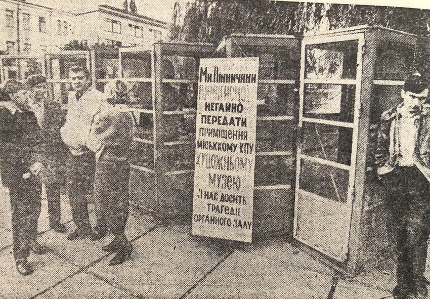 Вінничани ходили на мітинг щоб будівлю міськвиконкому віддали під художній музей та оголошували політичні голодування з вимогою не пускати до влади в Україні апаратників компартії.