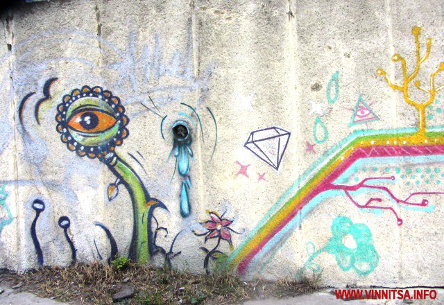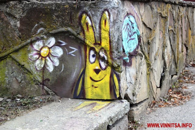 У Вінниці чимало цікавих графіті, які часто залишаються непоміченими. Вуличні художники зображують настінні малюнки з найоригінальнішими персонажами. І вдається це їм доволі добре. Тому деякі творіння малюють організовано, на замовлення і не «по ночах».