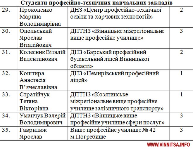 Отож, за результатами роботи комісії, кандидатами на призначення стипендій облдержадміністрації та обласної Ради у ІІ півріччі 2015 року визначено наступних осіб: