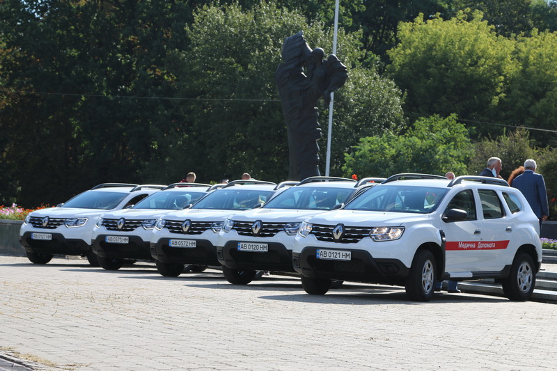 В сільські амбулаторії сімейної медицини Вінницької області 8 вересня передали 40 новеньких «Renault Duster». Це службові авто для медиків, які працюють в сільській місцевості. Ключі від машин на площі біля «Книжки» передали головним лікарям ЦПМСД голова Вінницької облдержадміністрації Сергій Борзов та голова Вінницької обласної ради Анатолій Олійник.