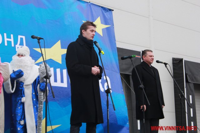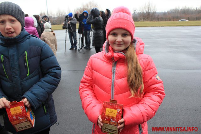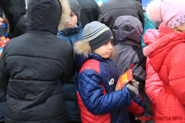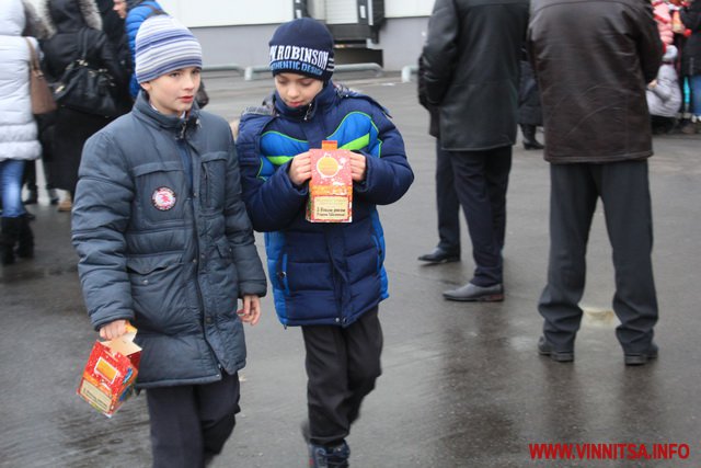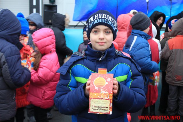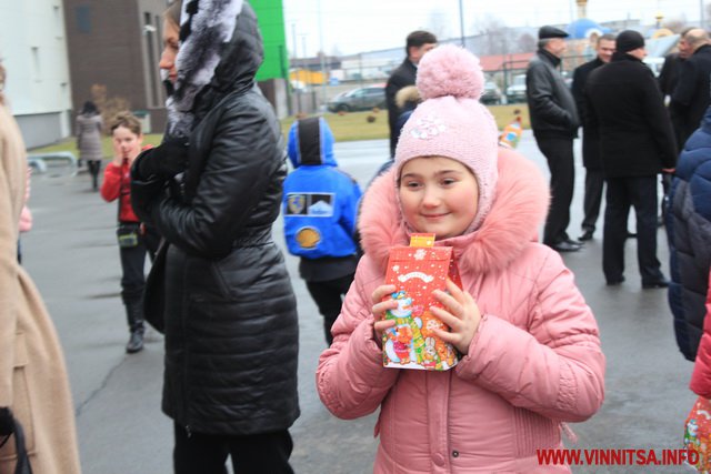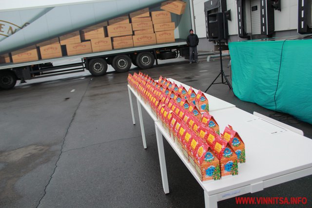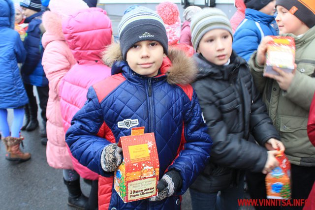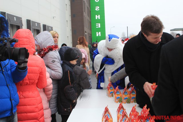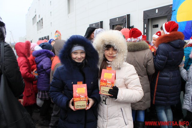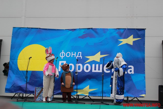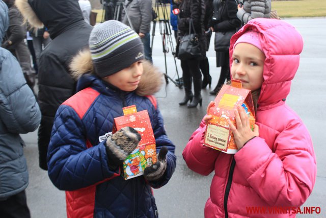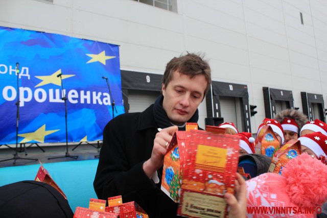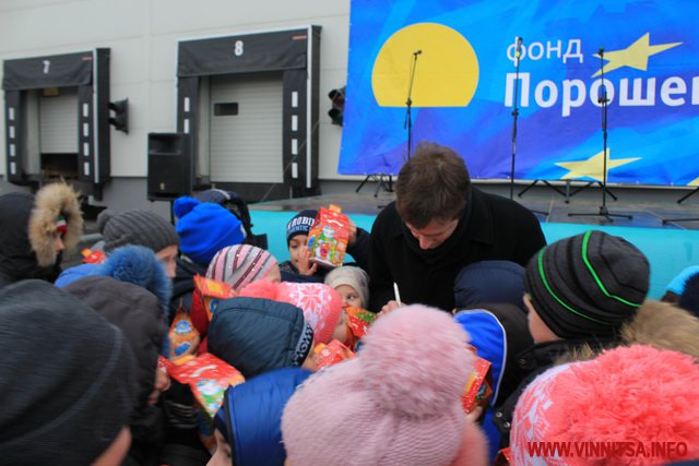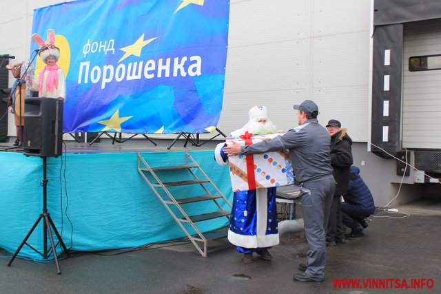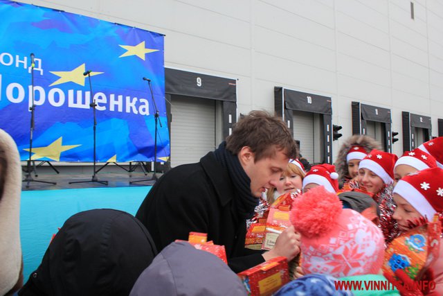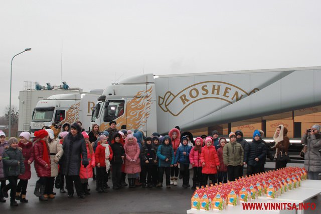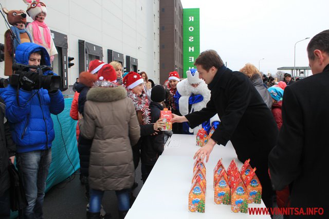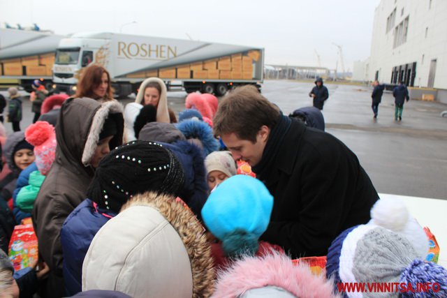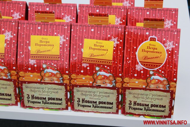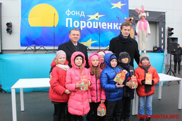 «Сьогодні фонд Порошенка продовжує традицію – як і кожного року дарує подарунки усім дітям, які живуть у Вінницькій області, найбільше - дітям Вінниці. А для дітей, чиї батьки воюють в зоні АТО, зробили акцію. Для них додатково буде зроблена екскурсія на фабрику, щоб вони побачили, як ці солодощі виробляються», – сказав Олексій Порошенко.