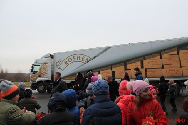 Вже склалась традиція – напередодні новорічних та різдвяних свят Фонд Петра Порошенка спільно з міською владою передає дітям новорічні солодкі подарунки. Сьогодні кілька вантажівок з цукерками вже виїхали з кондитерської фабрики, яка по вул. Липовецькій, щоб доставити їх у дитячі садки, школи та інші навчально-виховні установи.
