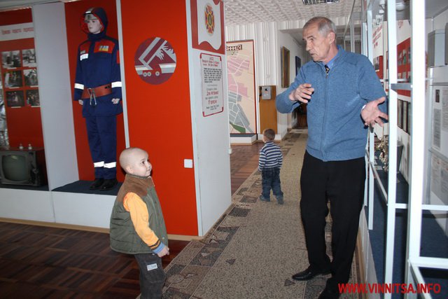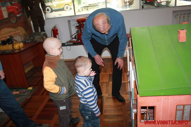 У Вінницький музей пожежно-рятувальної частини Дениско прийшов з татом, мамою,молодшою сестричкою і братиком.