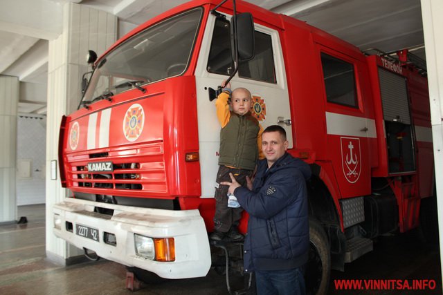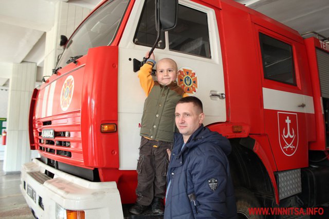 23 квітня у Вінниці провели екскурсію в рятувально-пожежній частині 6-річному хлопчику Денису, з багатодітної родини, який хворий на лейкоз. Хлопець мріє стати пожежником.