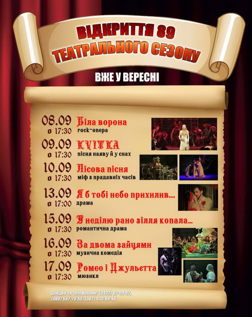 У вересні - відкриття 89-го театрального сезону Вінницького академічного музично-драматичного театру ім. М. Садовського.
