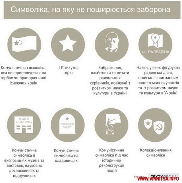 Закон також визначив атрибутику, що не підлягає під дію «декомунізаційного пакету». Сюди, перш за все, належать нагрудні знаки ветеранів, ордени, нагороди…
