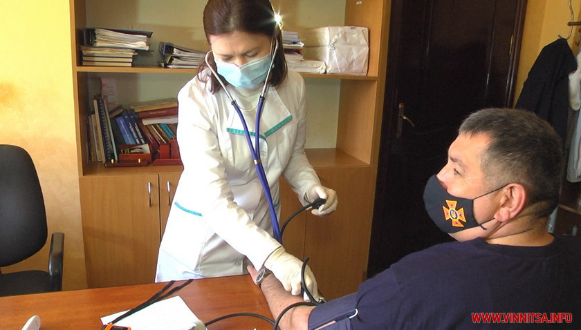 Другий поверх ГУ ДСНС України у Вінницькій області став місцем для вакцинації понад 160 працівників установи. Для цього виділили два кабінети керівників. В одному проводять попередній огляд: вимірюють тиск, температуру, сатурацію.