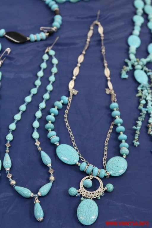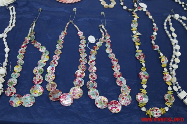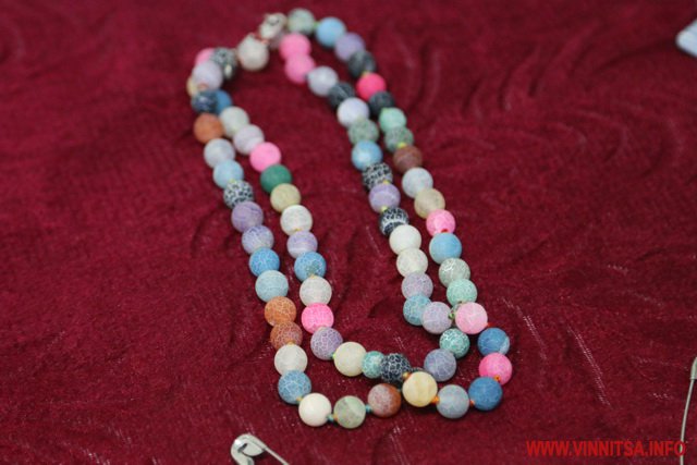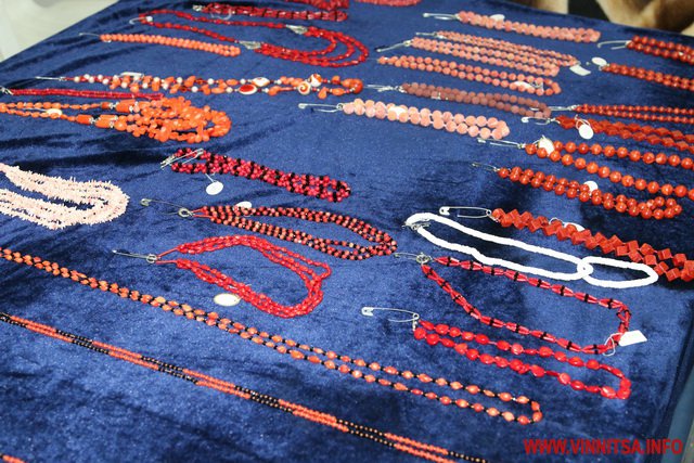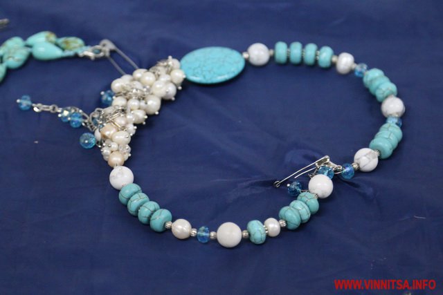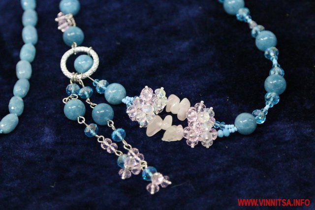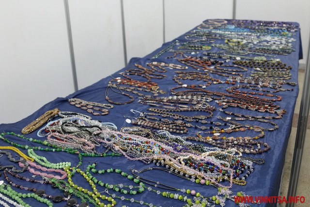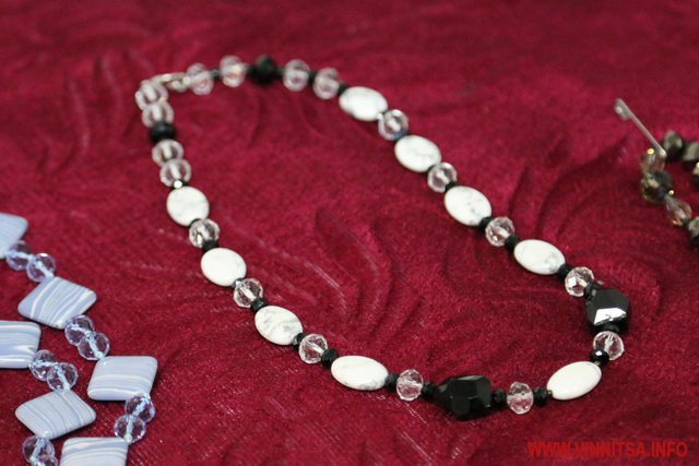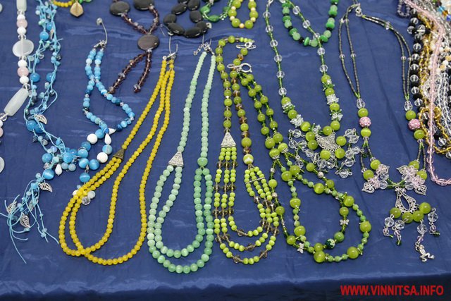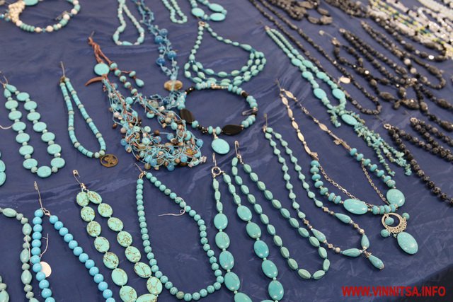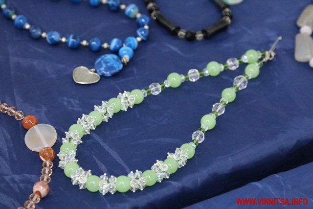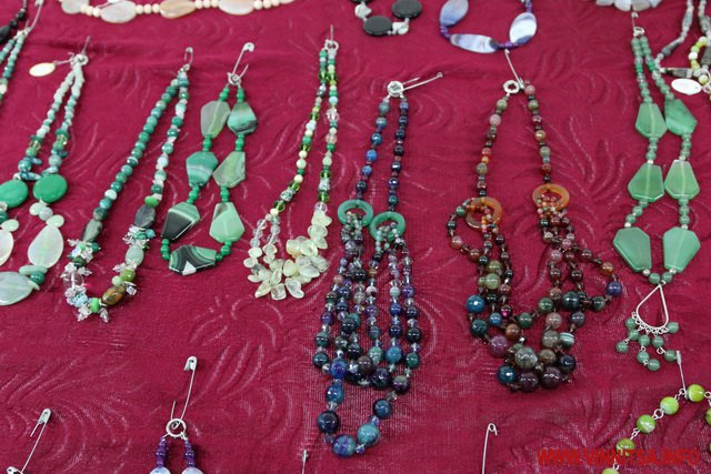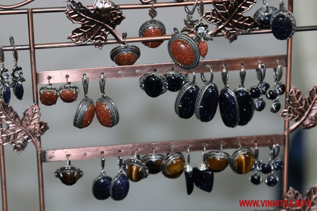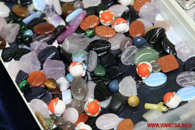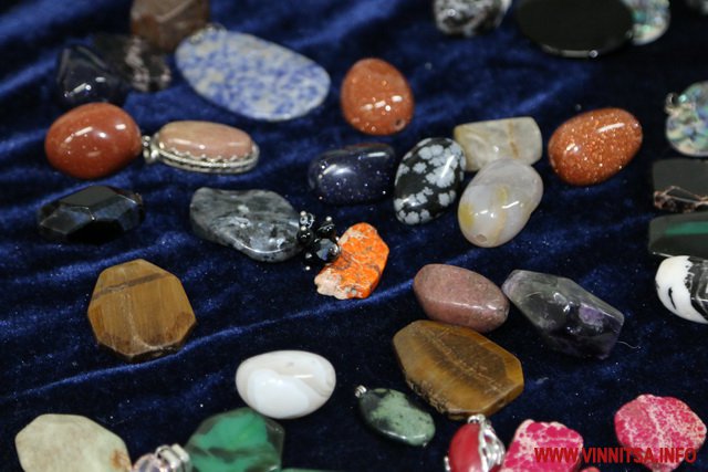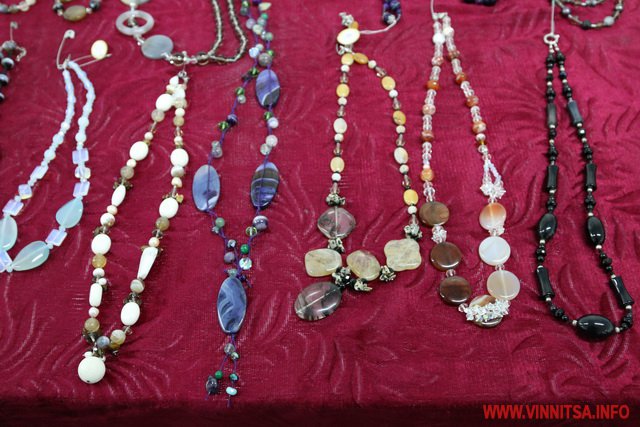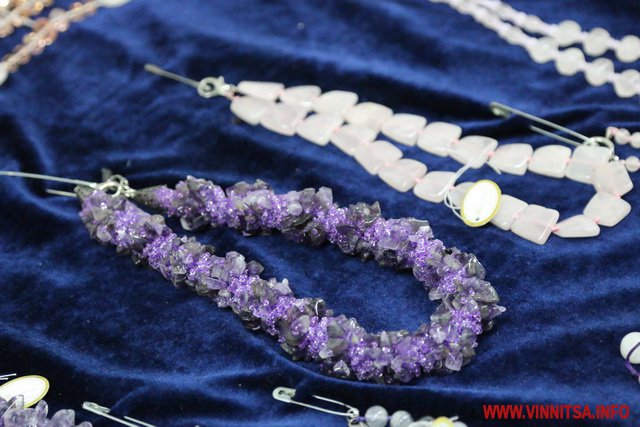 На виставці представлені кілька сотень ексклюзивних авторських прикрас з натурального каміння, такі як агат, сапфір, нефрит, аметист, бурштин, перли…