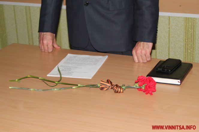 На останок Гайда передала керівнику Нацполіції регіону дві гвоздики, перев’язані георгіївської стрічкою.