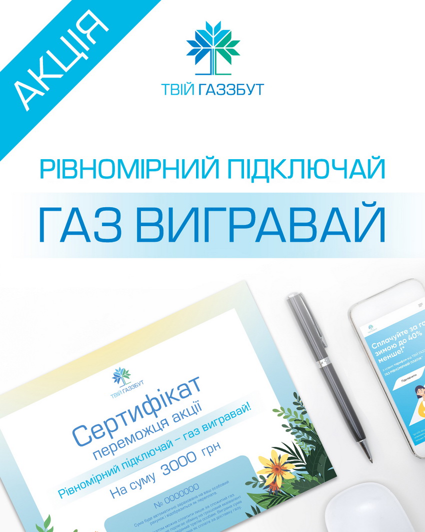 Тепер при підключенні до тарифу «ТВІЙ ГАЗ РІВНОМІРНИЙ ПЛАТІЖ» ви не тільки сплачуєте взимку до 40% менше, а й можете отримати газ у подарунок!