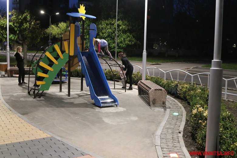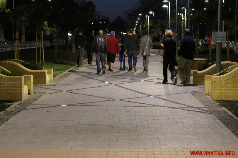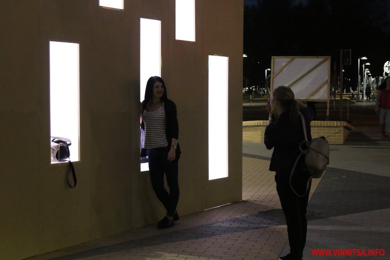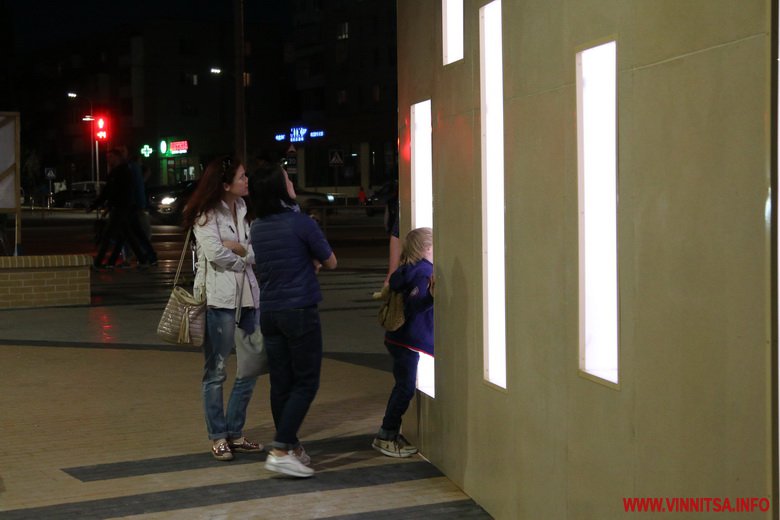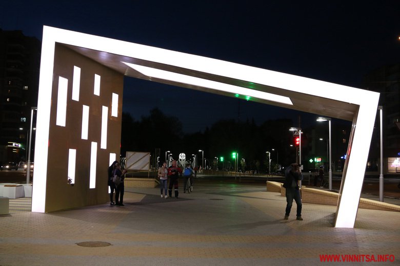 У темну пору доби арка світиться, збираючи біля себе вінничан: хтось просто роздивляється, інші роблять фото на пам’ять.