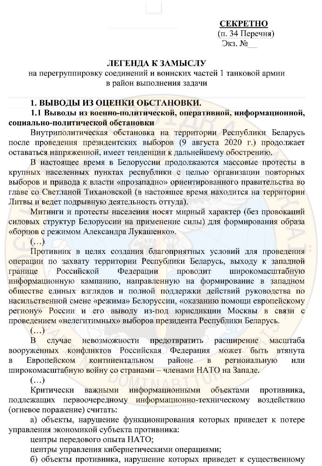 Одним з доказів підготовки рф до військової агресії проти сусідньої держави є «Легенда к замыслу на перегруппировку соединений и воинских частей 1 танковой армии в район выполнения задачи».