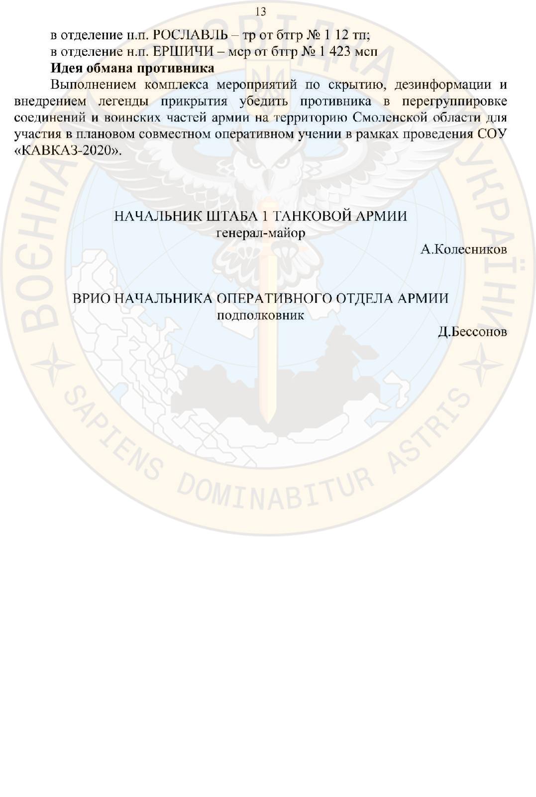 Здобуті воєнною розвідкою України документи свідчать про підготовку 1 танкової армії росії до вторгнення та захоплення території білорусі.