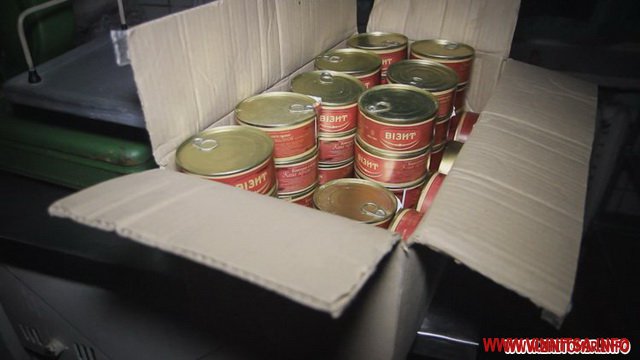 У підсобних приміщеннях їдальні виявили кілька десятків ящиків з сухпайками, які були закуплені Міністерством оборони у 2015 році. Сухі пайки відкривали та фасували їх вміст по «видах продукції»: тушонка та консерви – окремо, галети, кава, цукор – окремо.
