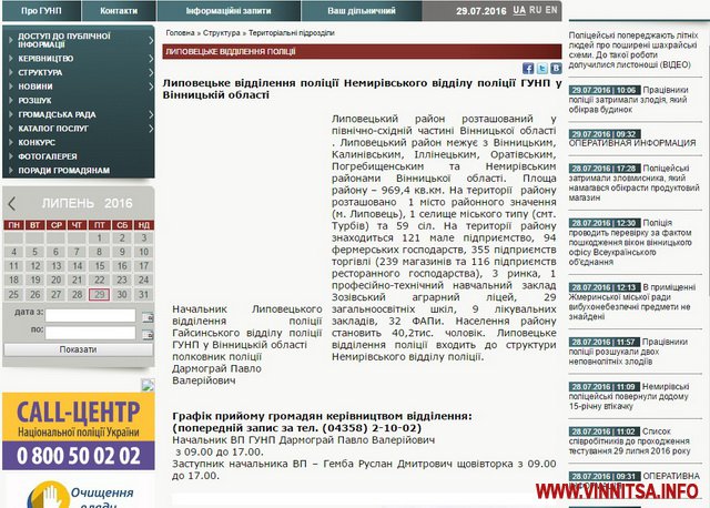 Відповідно до інформації на сайті ГУ Нацполіції області, станом на 29 липня, полковник поліції Дармограй Павло Валерійович очолює Липовецьке відділення поліції Немирівського ВП.