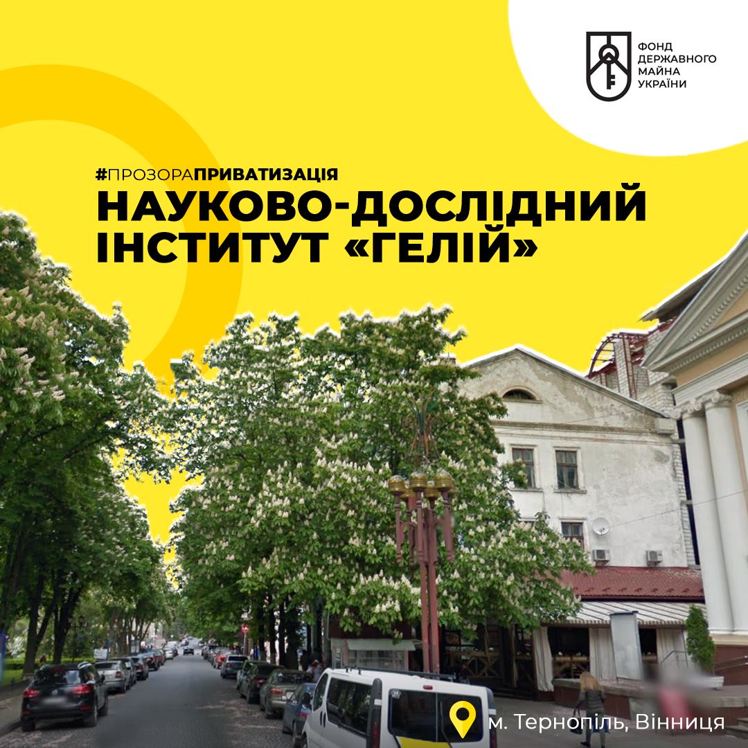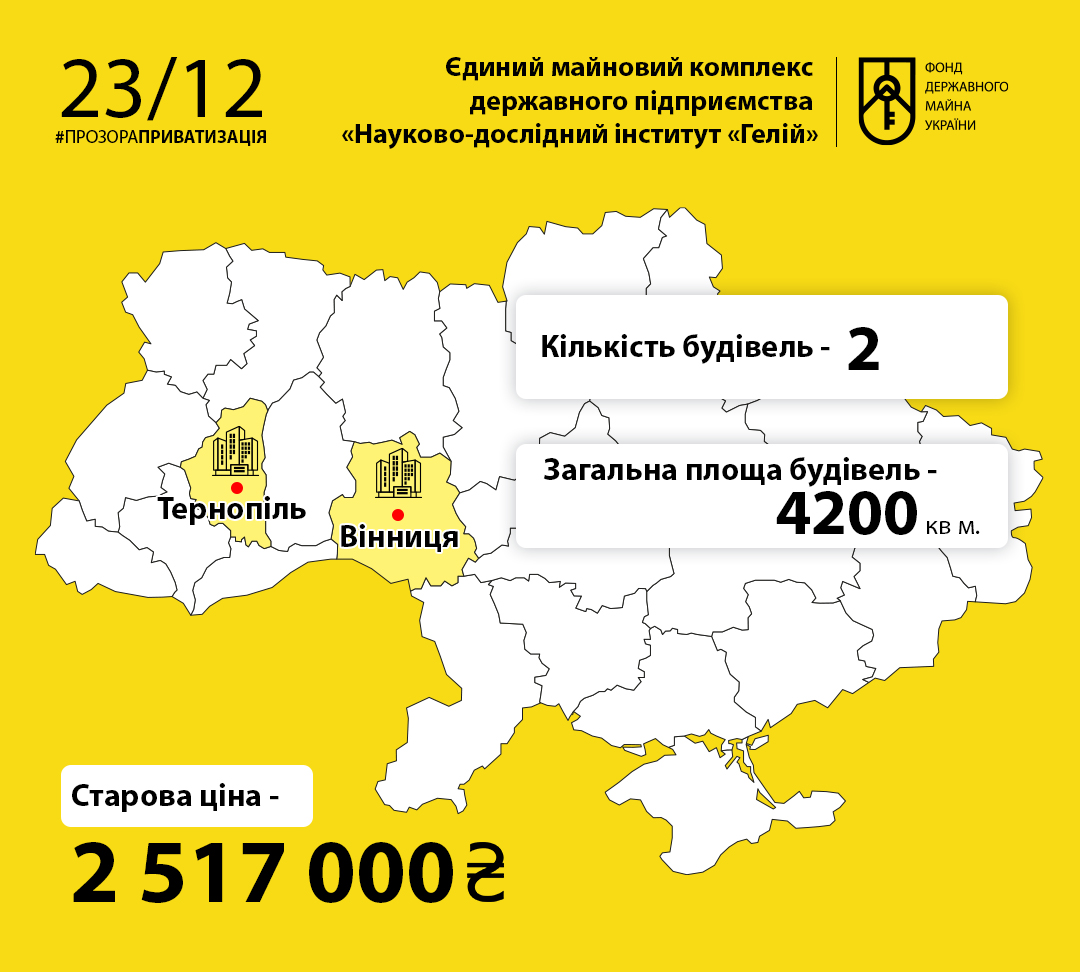 Відбудеться аукціон з продажу нежитлових приміщень у Вінниці та Тернополі, що входять до складу Єдиного майнового комплексу державного підприємства “Науково-дослідний інститут “Гелій”.