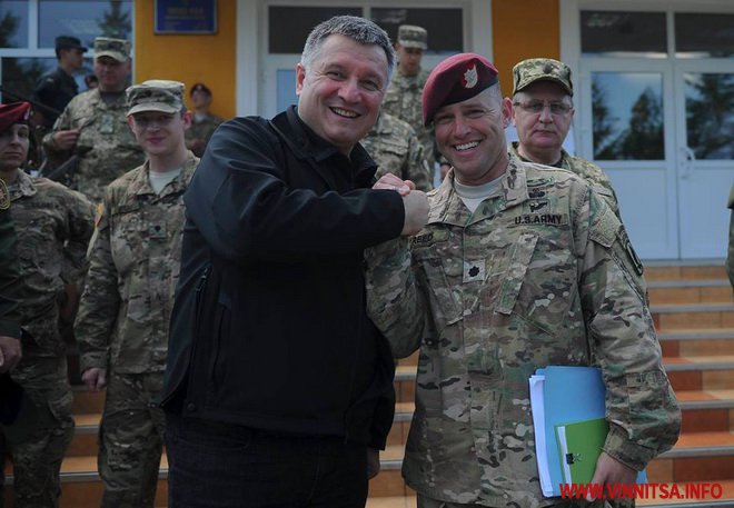 Міністр внутрішніх справ України Арсен Аваков поспілкувався з гвардійцями вінницького Ягуару під час навчань на Яворівському полігоні.