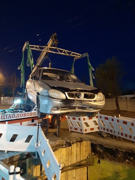 Вночі машину евакуювали рятувальники за допомогою крану.