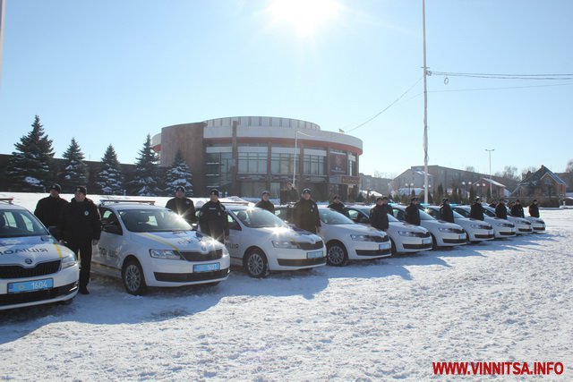 5 березня у Вінниці відбулося урочисте вручення службових автомобілів поліцейським підрозділам області. Автопарк поповнився на 21 новеньких «Шкод» та «Рено» для патрулювання, сучасним автозаком та автобусом для перевезення правоохоронців.