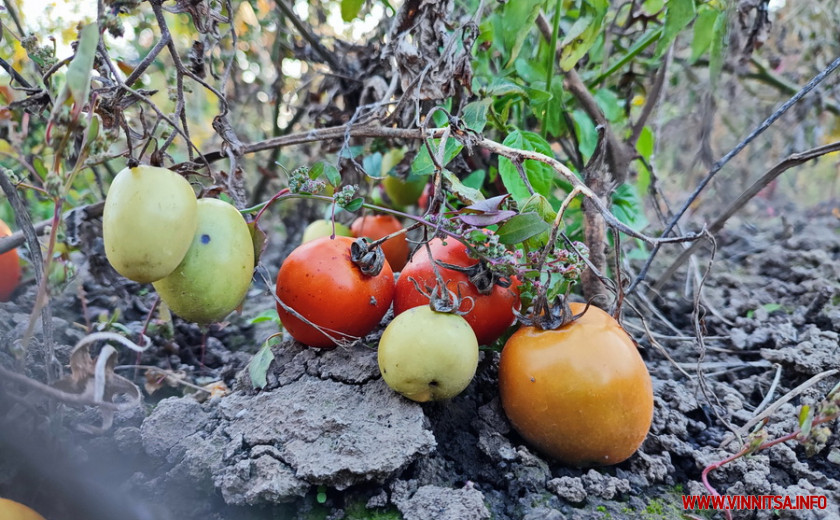 В селі на Вінниччині по-своєму проходить осінь. Люди обробляють землю, ще поки тепло – випасають худобу. Збирають останній урожай – хтось томати, хтось гарбузи, горіхи, малину, виноград. На грядках достигає пізній сорт полуниці, а також цвіте горох.