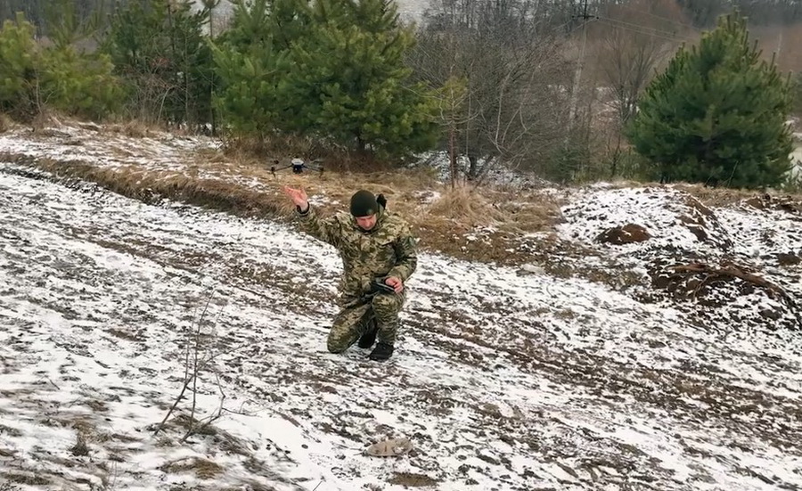 Не з першого разу вдається курсантам керувати квадрокоптером. Хтось додатково переглядає ще відео-уроки. Найважче, кажуть, шукати ціль на білому снігу.