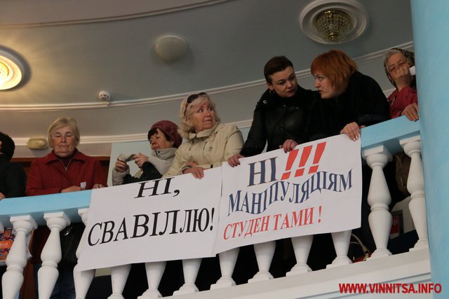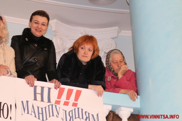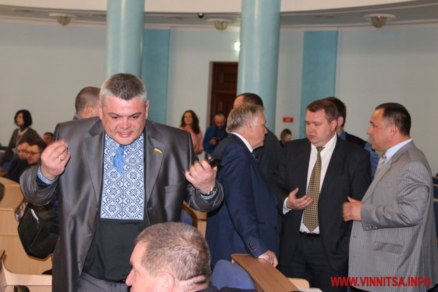 Після 11 години обранці таки перейшли до наступного питання порядку денного «Надання дозволу на поділ земельної ділянки під хірургічним відділенням лікарні імені Пирогова». До трибуни вийшла керівник департаменту охорони здоров’я Вінницької ОДА Людмила Грабович. Посадовиці не вдалося завершити свій виступ, адже у залі зчинився багалан.