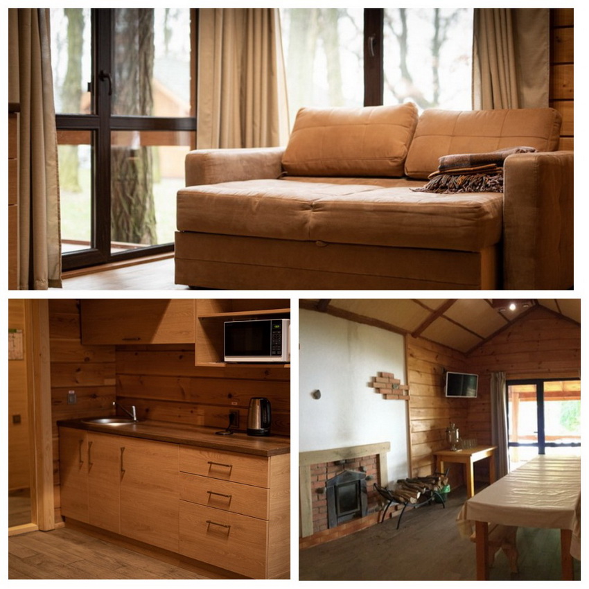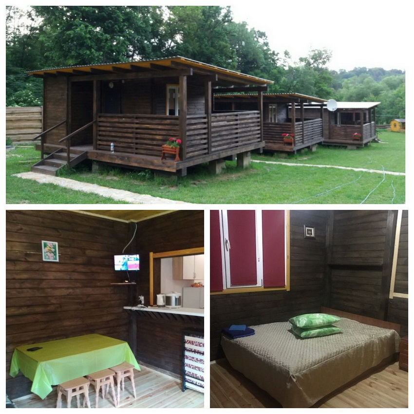 Дерев'яний котедж на 12 місць. В кожному зрубі: сучасні меблі, постільна білизна, холодильник, плазмовий телевізор, санвузол (душ, туалет, умивальник), а також опалення.