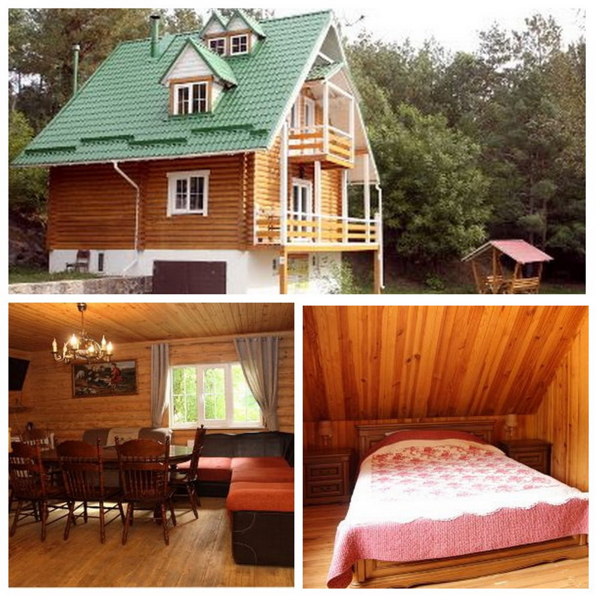 Дерев'яний котедж на 10-12 місць. У зрубі: сучасні меблі, постільна білизна, холодильник, плазмовий телевізор, два санвузли (душ, туалет, умивальник), опалення.