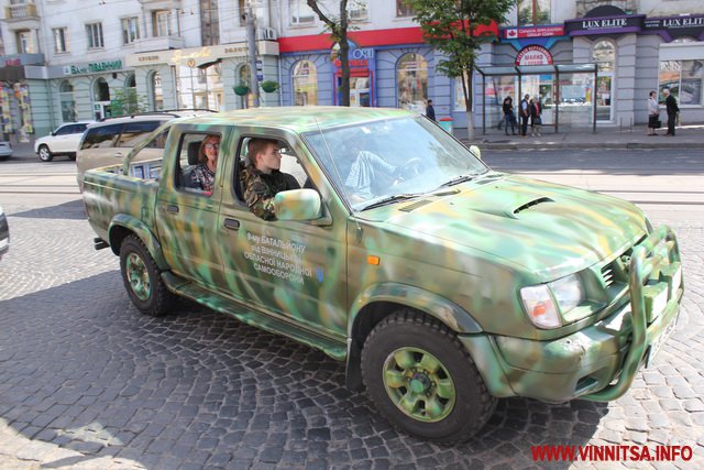 11 травня з Вінниці в зону АТО відправили джип «Nissan Navara» для 9-го вінницького батальйону, а також 6 машин з гуманітарною допомогою для бійців.
