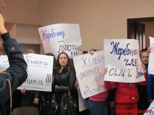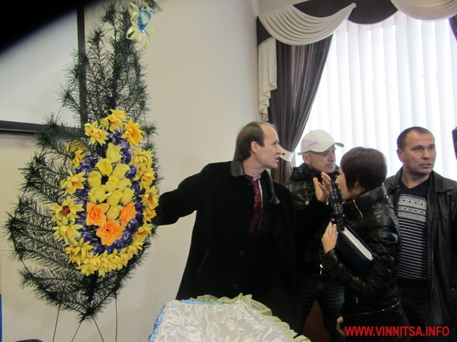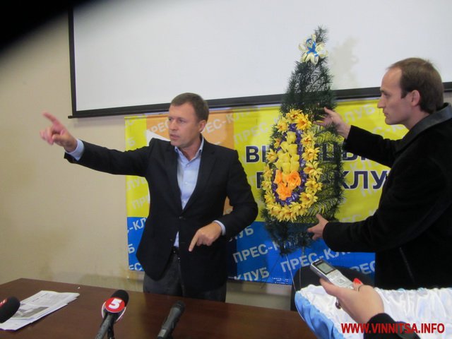 20 жовтня у Вінниці журналістів скликали на прес-конференцію народного депутата, колишнього члена фракції «Партії регіонів» Віктора Жеребнюка, який йде самовисуванцем по 14 округу. Під час прес-конференції представники «Батьківщини» на чолі з Януарієм Шостаком влаштували акцію протесту, з труною, погребальним вінком і яйцями, яка закінчилась бійкою, де постраждали журналісти.