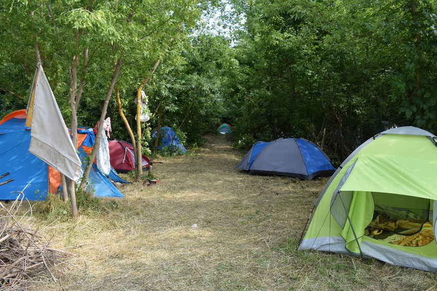 Діти та дорослі живуть у наметах, які розклали на галявині неподалік місцевого озера.