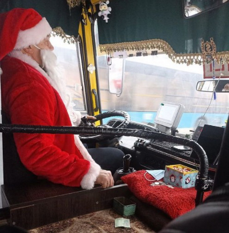 Як виявилося, окрім новорічного костюма, водій вразив пасажирів тим, що пригощав цукерками найменших пасажирів.