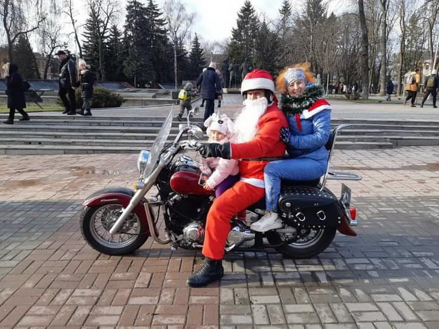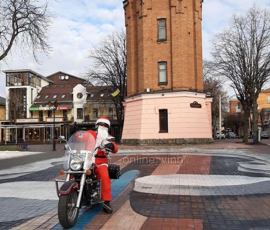 У перші дні 2022-го на дорогах Вінниці новорічним настроєм порадував ще один місцевий житель. На мотоциклі типу «чоппер», чоловік також розсікав вулицями міста. Охоче фотографувався з усіма, хто цього просив.