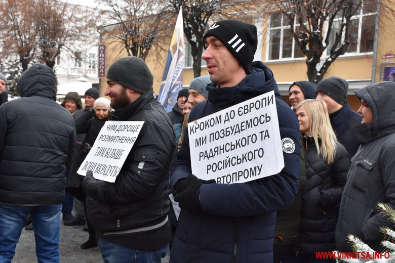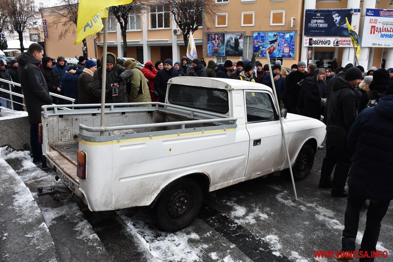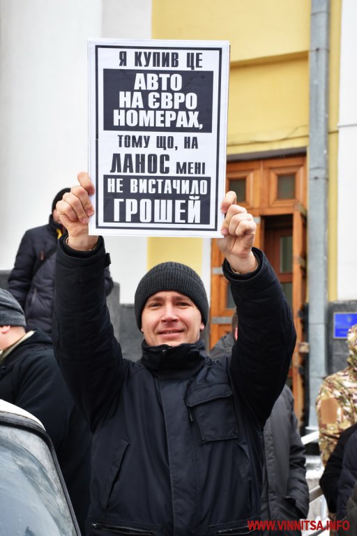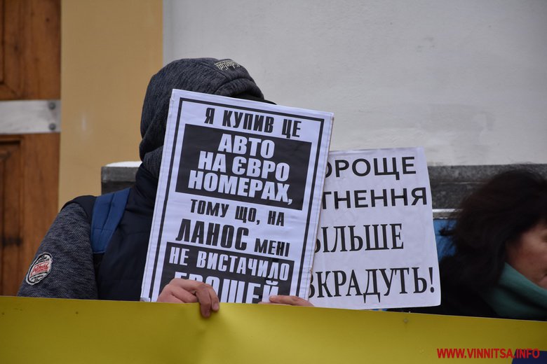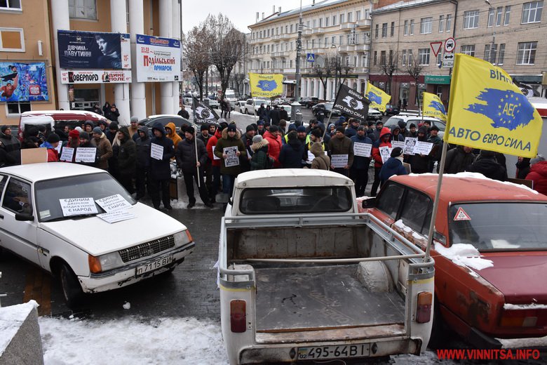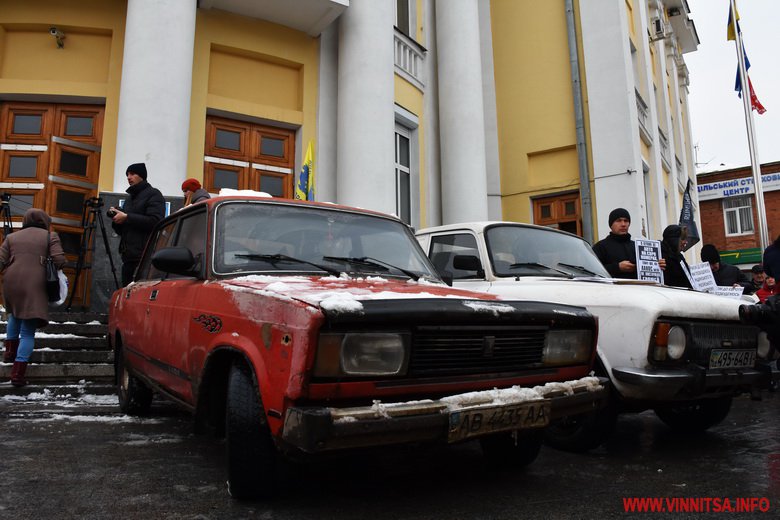 Таврія, «пиріжок» та іржавий «Жигуль» привезли 20 листопада під будівлю облради у Вінниці мітингувальники. Власники «євроблях» кажуть, що українці будуть користуватись радянськими авто, якщо Верховна Рада не прийме поправки, в яких передбачено пільгове розмитнення для авто на єврономерах. Представникам ОДА та облради передали лист, в якому просять вплинути на рішення Верховної Ради.