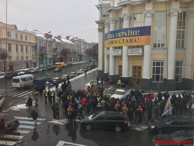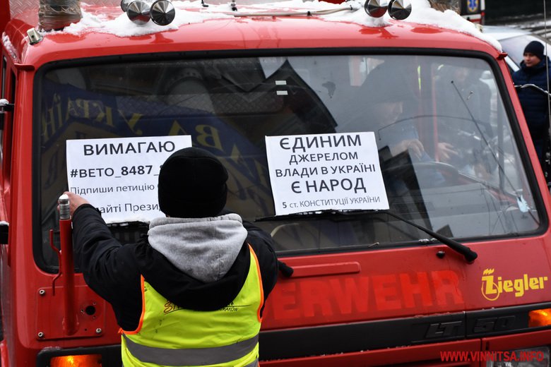 Біля ОДА мирна акція протесту, без автівок на єврономерах. Рух по Соборній протестувальники перекривати не збираються. Буде обмеження руху на трасі біля м. Гайсин, Могилів-Подільський, с. Якушинці, ресторану «Дубовий Гай».