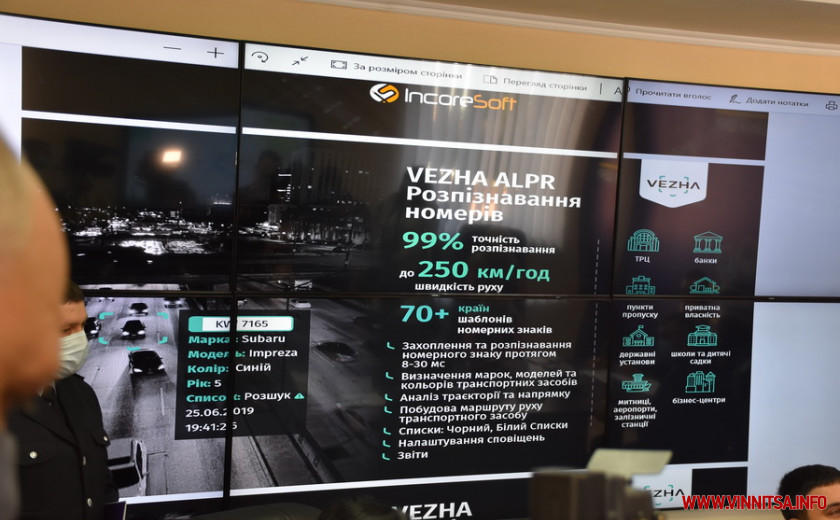 У Вінниці презентували безпекову систему «Vezha». Завдяки камерам відеонагляду, можна буде краще розпізнавати обличчя людей, навіть в масках. А також розпізнати номерних знаків автомобілів на дорогах.