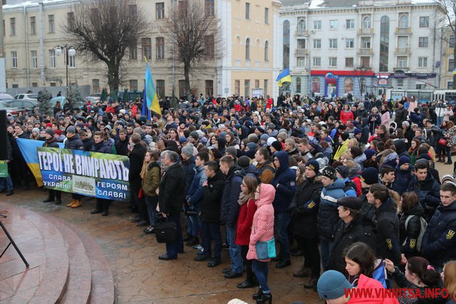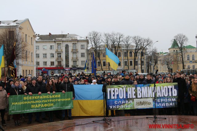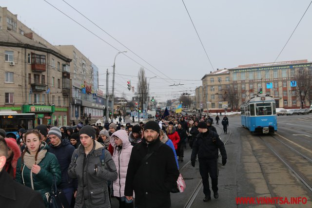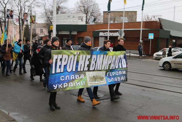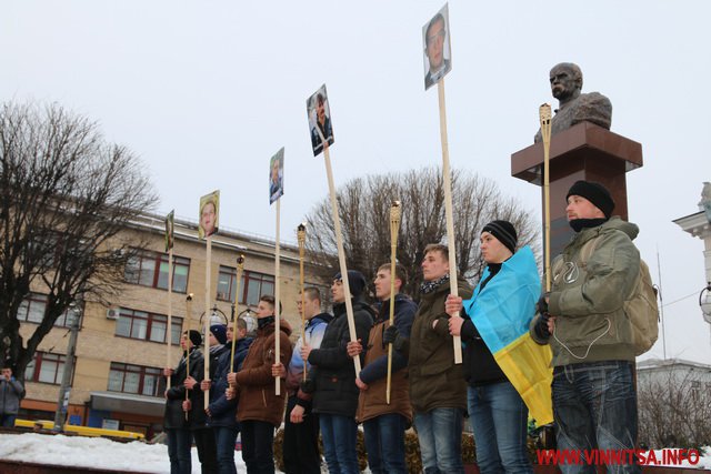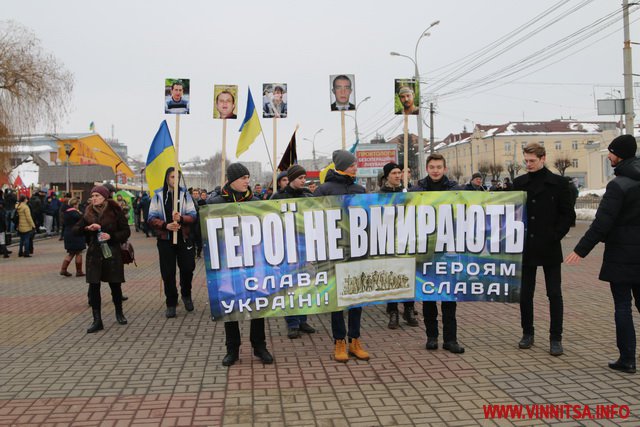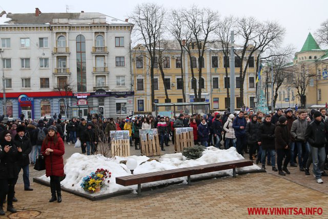 20 лютого у Вінниці відбулася хода з нагоди вшанування пам’яті Героїв Небесної сотні. Більше тисячі вінничан, переважно студентів вінницьких навчальних закладів, з національними прапорами пройшли від пам’ятника М. Коцюбинського до майдану «Небесної сотні».