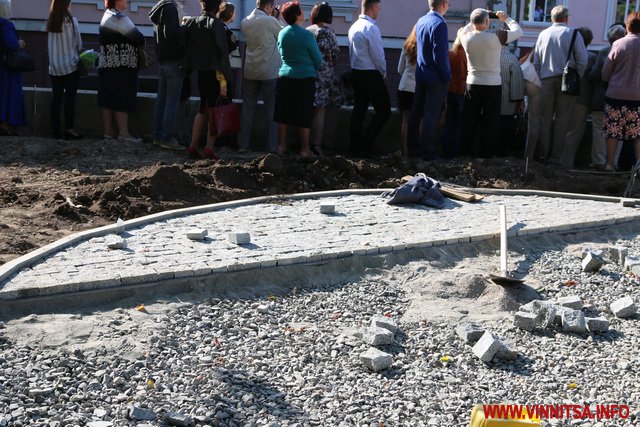 Роботи там тривають і у святкові дні. Територію вже засипали щебенем, залили постамент для майбутнього пам’ятника, поставити бордюри для доріжок.