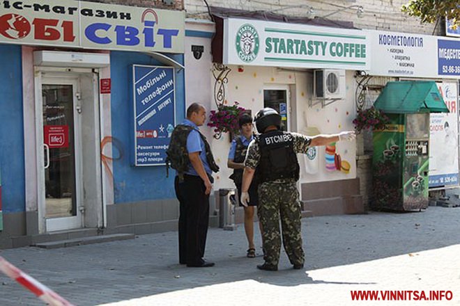 6 серпня у Вінниці працівник кав’ярні виявив підозрілу спортивну сумку та пакет виявив біля дерева, розташованої біля школи №2 по вул. Соборній. Про знахідку чоловік одразу сповістив працівників міліції.