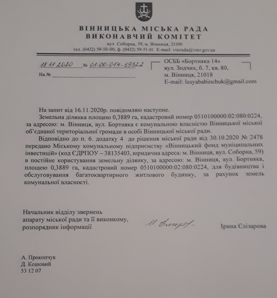 Олександра Бабінчук також додала, що 10 голів правління ОСББ уже зібрали підписи під ще одним зверненням до міської ради щодо будівництва. Сьогодні повинні надіслати документи і чекатимуть на відповідь.